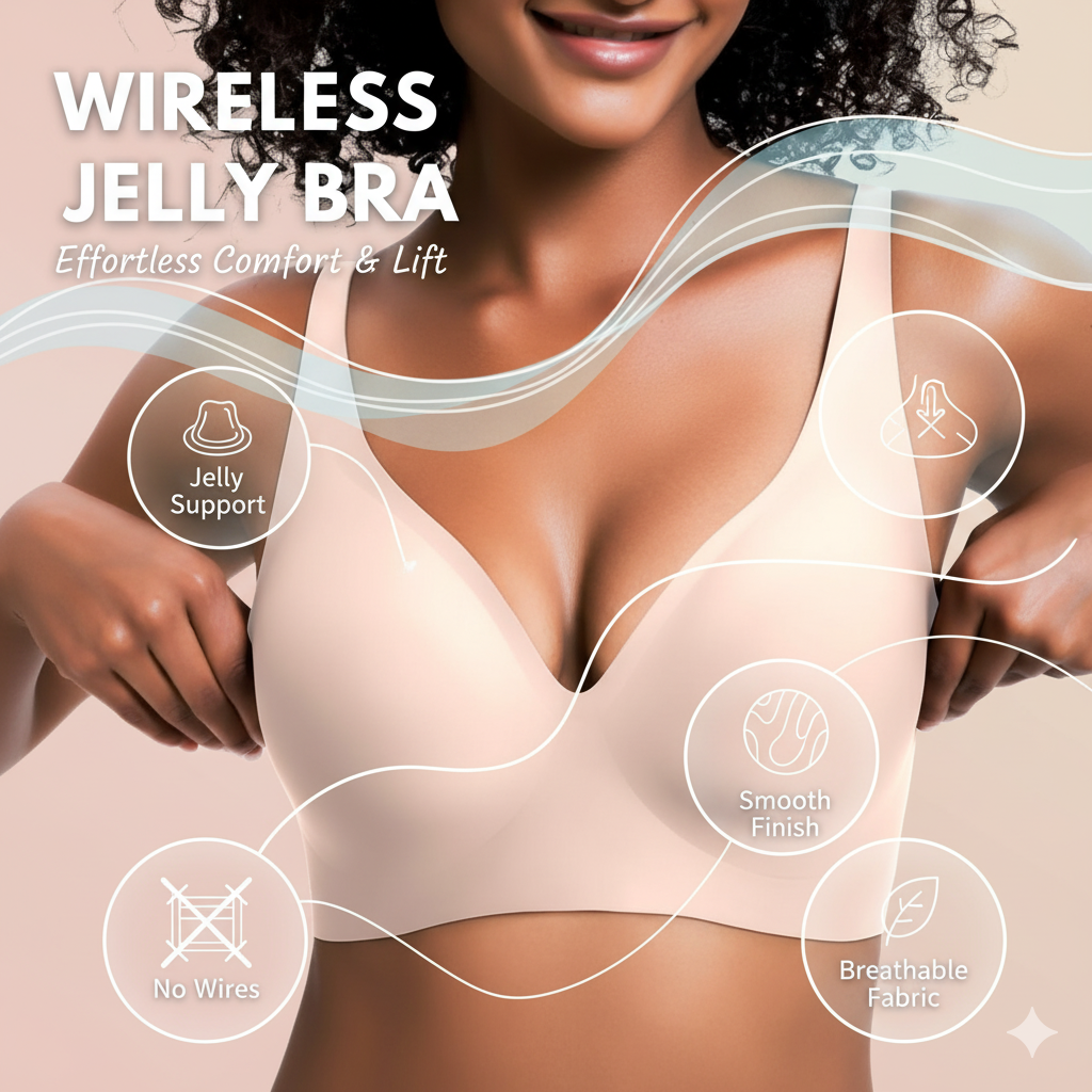 We fixed it. The Wireless Jelly Bra replaces old-school wires with 360* adaptive jelly padding that gives lift without pain. No pressure, no red lines — just support that feels like second skin.